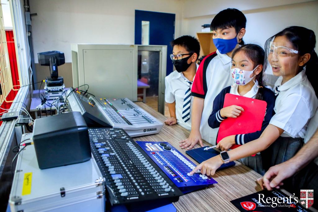 Students from Mr Geoffrey’s Y 4-6 ELD (English Language Development) class had the opportunity to interview Regent’s very own Sound and Light expert. Students pre-prepared questions to ask Mr John Mills, and they were invited to the Control Room to learn first hand exactly what it takes to run the light and sound equipment at our school.