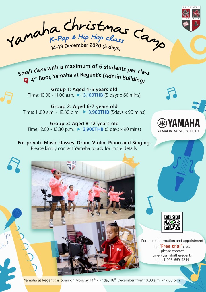 Join Yamaha’s K-Pop & Hip Hop Christmas Camp here at Regent’s International School Bangkok from 14-18 December, 2020.