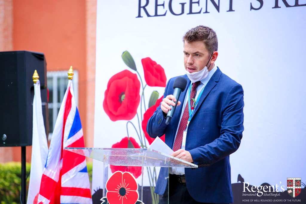 Today, at 11am on the 11th day of November, 2020, Regent’s International School Bangkok remembers and commemorates Armistice Day, also known as Remembrance Day. Each year, we gather to remember our brave fallen soldiers who died in all wars. The event commenced with an inspiring message from Mr Christopher Perkin, a representative from the British Embassy, followed by tributes from our Year 11 and 13 students ; Plub, Khatchatur, and Bless.